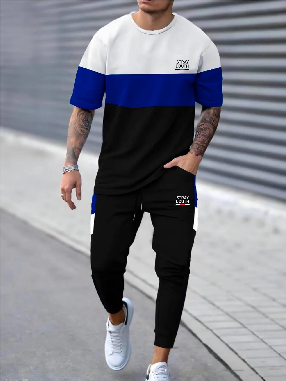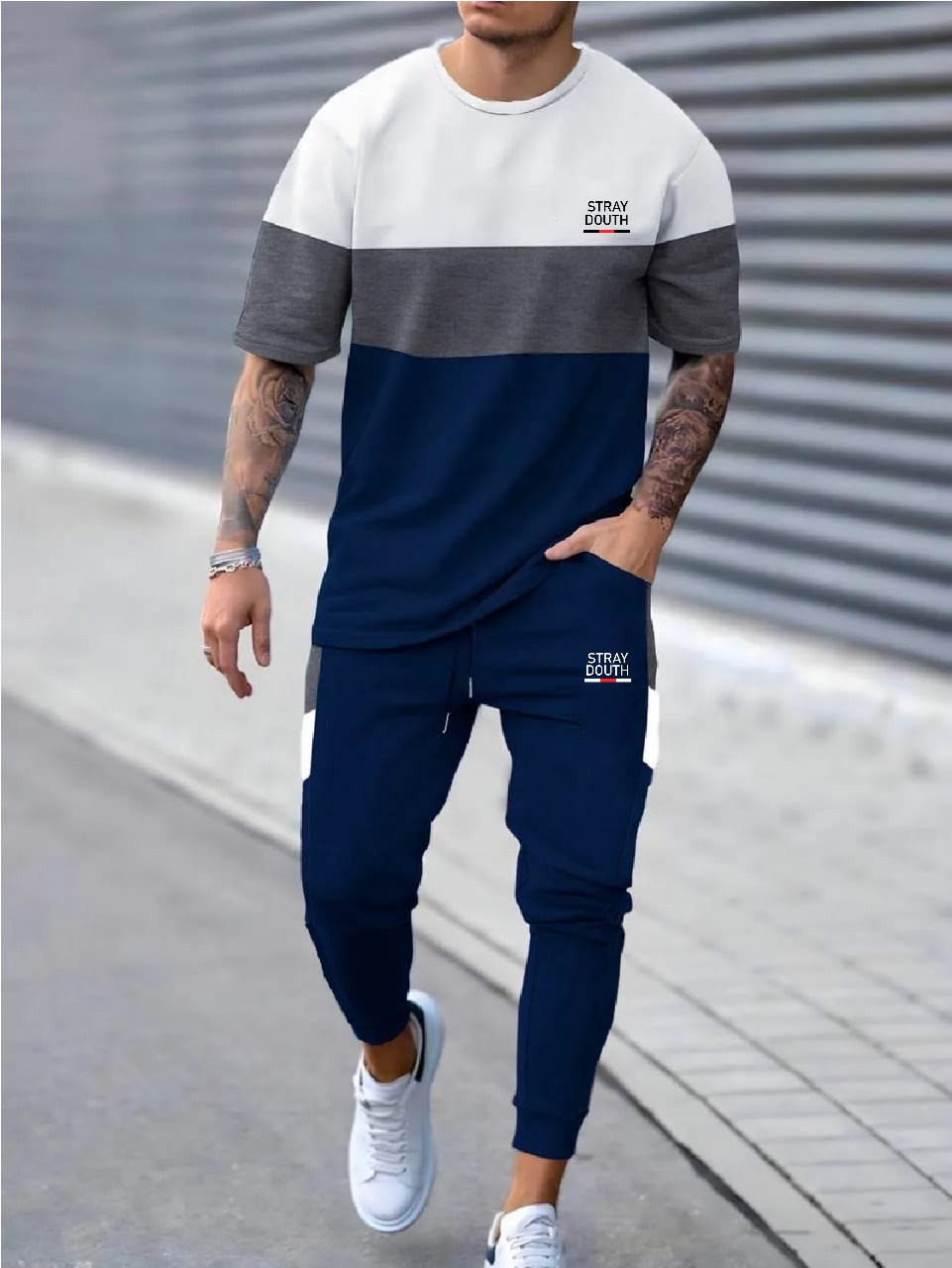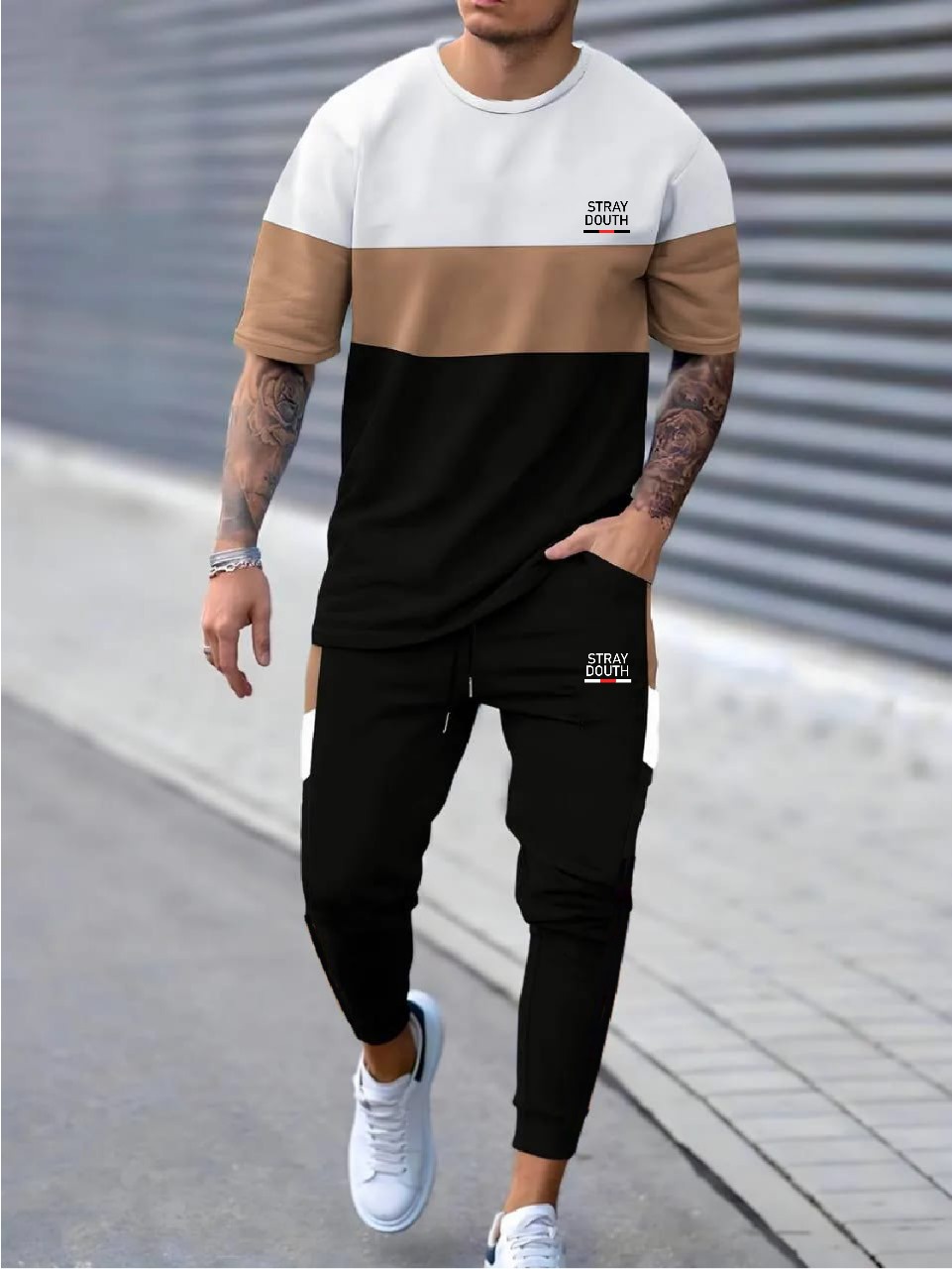 ترنج رجالي صيفي كاجوال , من قطعتين تيشرت وبنطلون ,خامه سمر ميلتون ليكرا, بجبوب علي جانبي البنطلون , وحبل علي الخصر لتحكم في المقاس المناسب , وتيشرت بنص كم ,